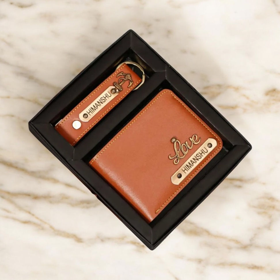 Men’s Personalized Wallet & Keychain Combo – With Name & Charm.